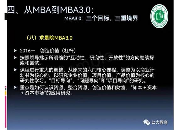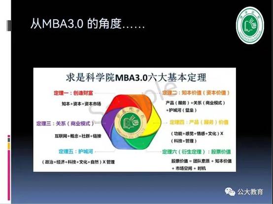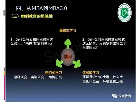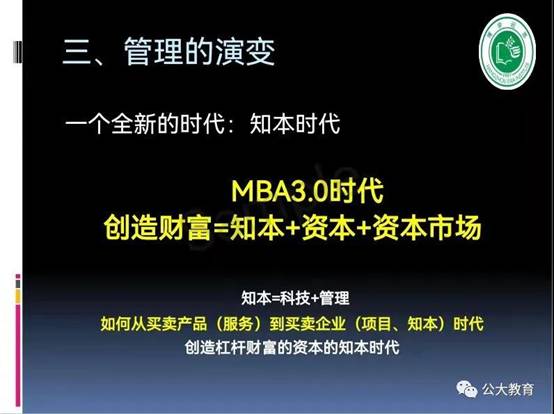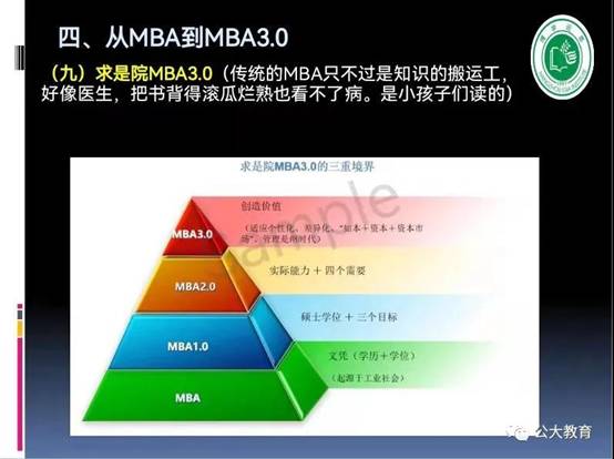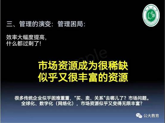 二個(gè)“無限”,好像一個(gè)“大廚”,面對眼花繚亂、非常豐富甚至雜亂無章、無限的、甚至看上去似乎有點(diǎn)惡心的食材,怎么樣去演化出它的價(jià)值、或者豐盛的美味佳肴?能不能適應(yīng)人的胃口的問題,也是方法問題、觀念和思想問題、管理問題;不同的時(shí)代,有不同的口味和做法,不同的生態(tài),構(gòu)成了這個(gè)全新的時(shí)代,也就是MBA3.0的時(shí)代。