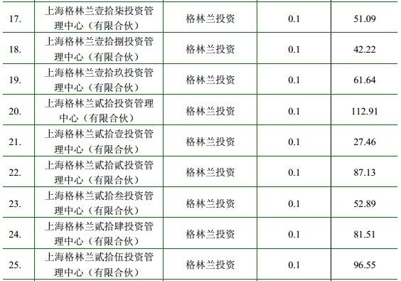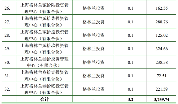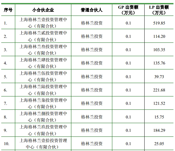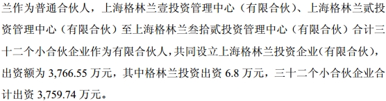 五、在此基礎(chǔ)上,以32個小有限合伙安排為有限合伙人(LP),格林蘭投資作為普通合伙人(GP),出資6.8萬元(注冊資本10萬元,其余的3.2萬元已經(jīng)作為對32個小有限合伙安排的出資),成立了大的有限合伙安排“上海格林蘭”。這是關(guān)鍵安排的第二步:張玉良通過注冊資本僅有10萬元的格林蘭投資,控制了3766.55萬元的內(nèi)部人持股權(quán)。