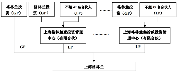 三、下圖為上海格林蘭的股權(quán)結(jié)構(gòu),在整個重組架構(gòu)的安排中,這個層疊復制的有限合伙安排極為重要,充分體現(xiàn)了管理層和員工的利益訴求,并規(guī)避了以往通過信托結(jié)構(gòu)進行利益安排的種種弊端。
