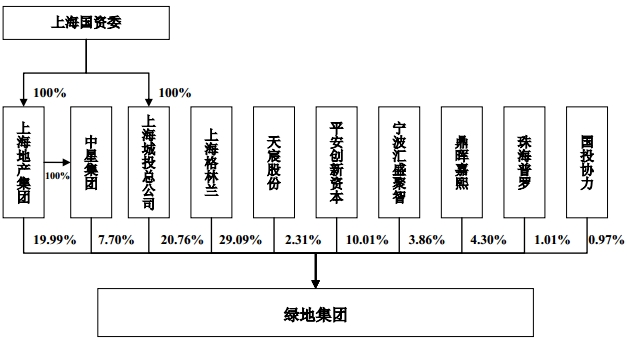 一、通過一個“金蟬脫殼、化繭成蝶”的資本重組安排,綠地集團“混合所有制改革”備受關(guān)注。下圖為重組前的綠地集團股權(quán)結(jié)構(gòu)。