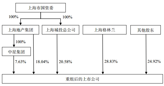 二、下圖為重組后的新綠地集團的股權(quán)結(jié)構(gòu),上海格林蘭作為員工持股平臺,持有重組后新公司28.83%的股份。