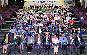 圖片說明 : 圖二:學(xué)生校友組織致送生日賀卡予香港公開大學(xué)。 圖三:張永銳副主席、 圖四:大合照。