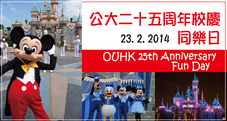 將于二月二十三日(星期日)舉行的公大二十五周年校慶同樂(lè)日現(xiàn)已開(kāi)始網(wǎng)上登記,歡迎本校全職員工、學(xué)生與校友攜同家人及朋友一起參加,共同在廸士尼歡度一個(gè)愉快的周日。為添氣氛,當(dāng)日在樂(lè)園原野劇場(chǎng)舉行專屬公開(kāi)大學(xué)的「獅子王慶典」大型歌舞表演中,特設(shè)抽獎(jiǎng)環(huán)節(jié),獎(jiǎng)品豐富,萬(wàn)勿錯(cuò)過(guò)。歌舞劇場(chǎng)地座位有限,先到先得。