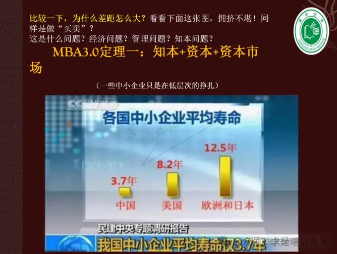 求是科學(xué)院把為企業(yè)特別是為民營企業(yè)的服務(wù)作為自己的重要職責(zé)和使命或重要工作之一,經(jīng)過二十多年,從MBA到MBA3.0/DBA3.0,培養(yǎng)和造就了數(shù)以萬計的高級經(jīng)濟管理人才,其中超過4000人獲得國際化工商管理碩士和博士學(xué)位,校友創(chuàng)造了200多家上市企業(yè)。在長期的教學(xué)和科研實踐中,求是科學(xué)院形成了經(jīng)濟、管理、實踐等3X3=9個打通基礎(chǔ)上的MBA3.0/DBA3.0的理論體系及相應(yīng)的知識產(chǎn)權(quán),為企業(yè)的健康,提供了豐富的應(yīng)用型理論、方法與課程體系。
