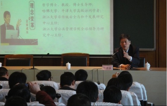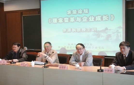 月13日上午,由我院主辦的《理念變革與企業(yè)成長(zhǎng)》求是論壇在省委黨校文欣校區(qū)順利舉辦。在論壇舉辦前舉行了一個(gè)簡(jiǎn)短的新學(xué)年開學(xué)和歡迎新學(xué)員的儀式,研究院主要領(lǐng)導(dǎo)金雪軍院長(zhǎng)、周文騫名譽(yù)院長(zhǎng)出席并發(fā)表了講話,公大校友會(huì)浙江省總會(huì)會(huì)長(zhǎng)徐金強(qiáng)以及政協(xié)常委、民宗委主任鮑鋼校友等也出席了論壇。
