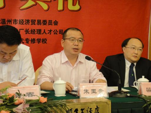 2011年溫州春季班開學(xué)典禮于2011年5月14日在溫州順生大酒店23樓秋實廳舉行。中共溫州市委人才辦朱玉貴主任、溫州市經(jīng)貿(mào)委唐春副主任、溫州市經(jīng)貿(mào)委培訓(xùn)處陳煥權(quán)處長、香港公開大學(xué)李兆基商業(yè)管理學(xué)院梁子沖博士、我校何櫟校長等出席了儀式。
