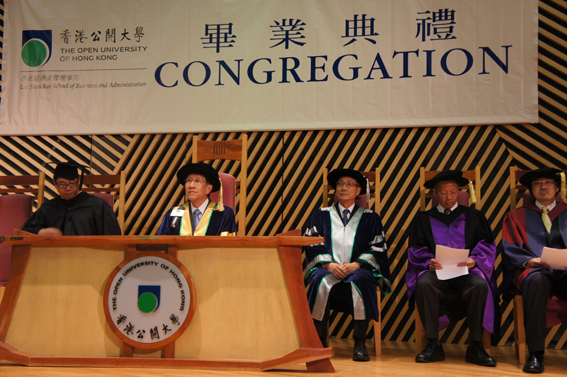 7月15日,畢業(yè)典禮在寬敞明亮的楊雪姬演講廳舉行,香港公開大學(xué)校董會(huì)主席方正,校長梁智仁,李兆基商業(yè)管理學(xué)院院長葉耀強(qiáng),高志強(qiáng)博士,鐘少梁博士,國資委張志強(qiáng)主任等出席了畢業(yè)典禮。畢業(yè)典禮由香港公開大學(xué)李兆基商業(yè)管理學(xué)院石雪梅老師主持。
