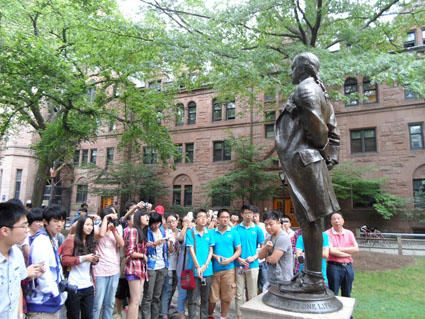 結(jié)束了在洛杉磯學(xué)校的學(xué)習(xí),學(xué)員們接著前往美國硅谷所在地——舊金山,參觀了斯坦福大學(xué)、加州大學(xué)伯克利分校和蘋果公司總部,而后直飛東海岸,游覽了東部久負盛名的四座城市——名校匯集之波士頓、金融翹楚之紐約、政治中心之華盛頓、歷史名城之費城。在波士頓,學(xué)員們參觀了心儀已久的世界名校—哈佛大學(xué)、麻省理工學(xué)院、耶魯大學(xué)和西點軍校。在哈佛,學(xué)員更是有幸在華裔學(xué)長的帶領(lǐng)下,進入科學(xué)中心(SCIENCE CENTER)、博物館、及自修室(STUDY HALL)內(nèi)部參觀。游覽名校之余,學(xué)員們還來到位于波士頓市區(qū)的美國海軍基地,登上了已退役的美國戰(zhàn)艦CONSITITUTION號,感受到了美國軍事科技的強大;在紐約,學(xué)員們登上游輪,暢覽曼哈頓街景,遠眺自由女神像,參觀華爾街,漫步第五大道,夜游帝國大廈;在華盛頓,學(xué)員們游國會山莊,覽林肯紀念堂,在白宮門前一一留念;在費城,學(xué)員們來到曾簽署過《美國獨立宣言》和憲法的獨立宮,在200多年后的今天,重溫當(dāng)年美國國父所倡導(dǎo)的民主與獨立精神。