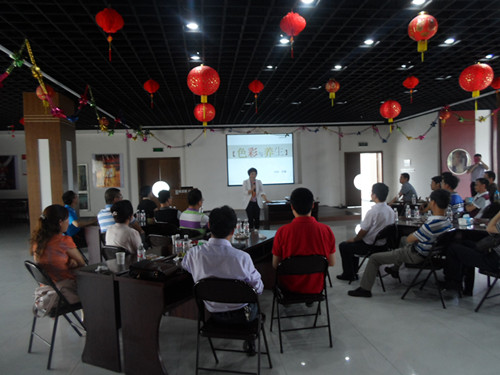 在阮仕集團會議室我們觀看了淡水珍珠的養(yǎng)殖宣傳片,了解了珍珠成長過程和加工設計。隨后秋季班學員王越的同學陳曦老師為大家展開《色彩與養(yǎng)生》的精彩演講,令大家心曠神怡,充滿能量。
