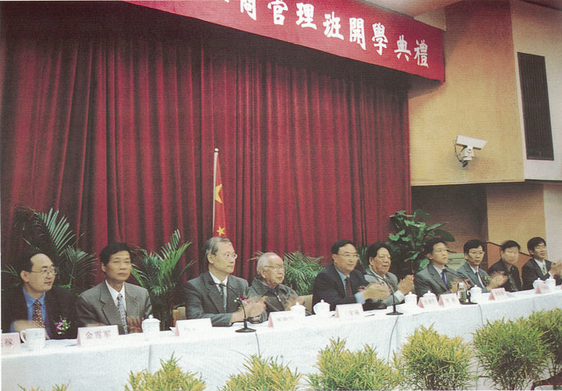 張浚生同志(左五)在國(guó)際高級(jí)工商管理研修班開(kāi)學(xué)典禮上作重要講話