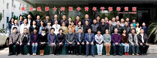 2013-05-29??? 4月22日上午,由青田縣委組織部主辦、我院承辦的青田縣第十四期中青年干部培訓班在省委黨校文欣校區(qū)正式開學。青田縣委組織部部長尚勇慶、副部長饒欽英、我院院長金雪軍、秘書長何櫟出席了開學儀式。??金院長代表研究院對尚部長和饒部長及學員們的到來...
