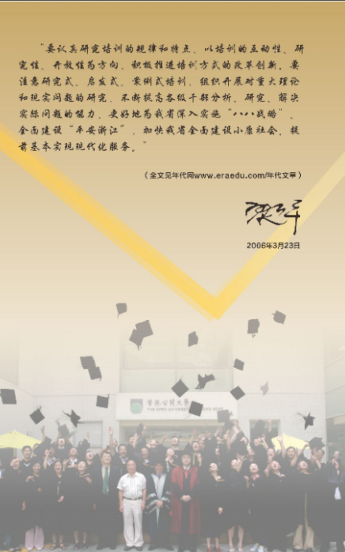 學(xué)校是浙江省人事培訓(xùn)中心的培訓(xùn)基地、浙江省企業(yè)經(jīng)營(yíng)管理人員培訓(xùn)基地、浙江大學(xué)MPA教育培訓(xùn)基地,并與清華長(zhǎng)三角研究院教育培訓(xùn)中心聯(lián)合成立了清華長(zhǎng)三角教育培訓(xùn)中心浙江高級(jí)管理研修部,是香港公開(kāi)大學(xué)、美國(guó)普萊斯頓大學(xué)、西雅圖城市大學(xué)、肯尼迪大學(xué)、英國(guó)劍橋大學(xué)、聯(lián)合國(guó)教科文組織和平中心等的合作伙伴,并和美國(guó)、英國(guó)、澳洲等許多大學(xué)和教學(xué)科研機(jī)構(gòu)建立了密切的聯(lián)系。本校以培養(yǎng)社會(huì)急需的國(guó)際化、高層次、各種應(yīng)用型專業(yè)人才為首要目標(biāo),精心打造各類培訓(xùn)項(xiàng)目,培養(yǎng)了一大批各類專業(yè)人才,樹(shù)立了良好的社會(huì)信譽(yù)和社會(huì)形象。連續(xù)獲得了“浙江省優(yōu)秀企業(yè)經(jīng)營(yíng)管理人員培訓(xùn)基地和優(yōu)秀示范機(jī)構(gòu)”、“浙江省公眾滿意質(zhì)量暨商業(yè)信譽(yù)優(yōu)良單位”、“浙江省公眾滿意質(zhì)量誠(chéng)信雙優(yōu)單位”、“浙江省優(yōu)質(zhì)教育特色學(xué)?!?、“浙江省優(yōu)質(zhì)教育特色成就獎(jiǎng)”、“浙江省十佳培訓(xùn)機(jī)構(gòu)”、“中國(guó)最具影響力的品牌”等一系列殊榮。