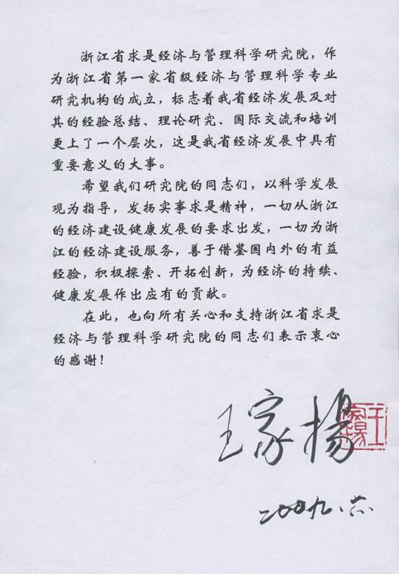 | 浙江省原省長(zhǎng) 李豐平 同志題詞 |